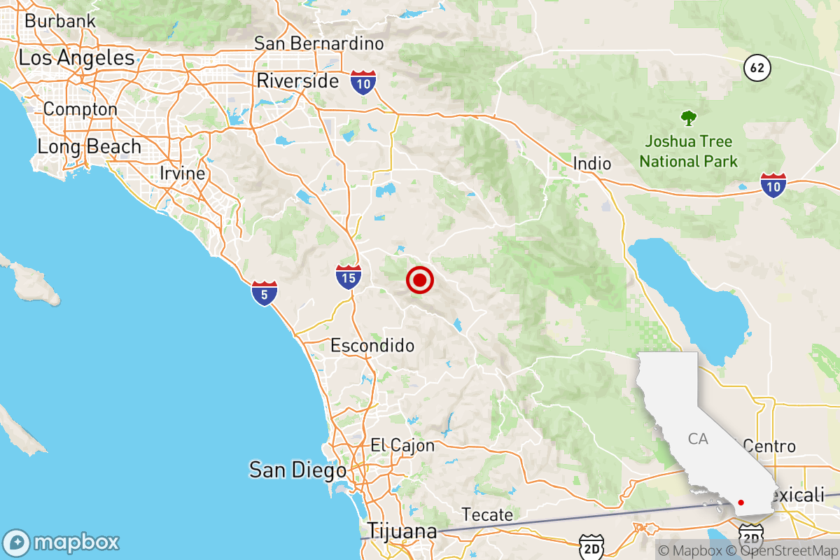 The earthquake occurred 15 miles from Escondido, 15 miles from Fallbrook, and 18 miles from Murrieta.